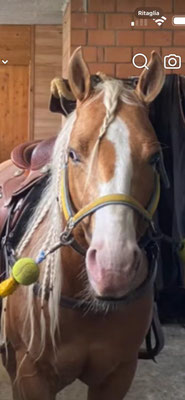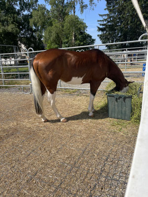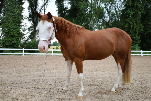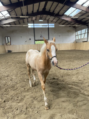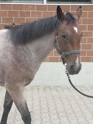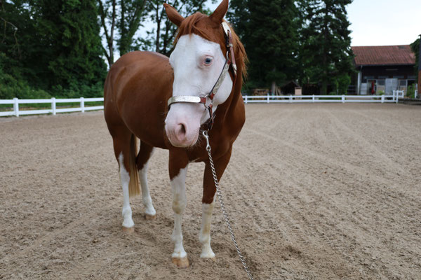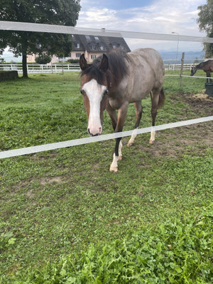 Diese junge Stute überzeugt durch ihren wunderbaren Charakter: sie ist menschenbezogen, verspielt und zeigt sich jetzt schon sehr lernwillig. Sie kennt den täglichen Umgang.