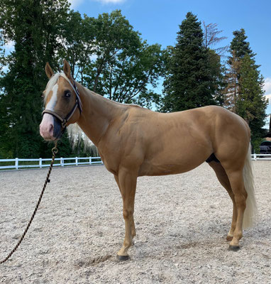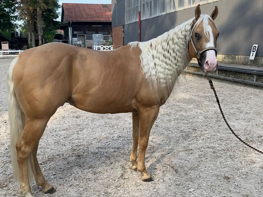 Wir bieten eine vielversprechende Palomino-Stute zum Verkauf an.