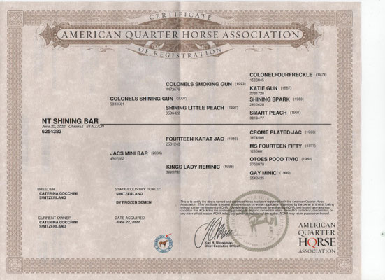 Geboren 2007 stammt er von dem renommierte NRHA Hall of Famer Gunner (Colonels Smokiong Gun) ab und seine Mutter ist Shining Little Peach, eine direkt Tochter von Shining Spark